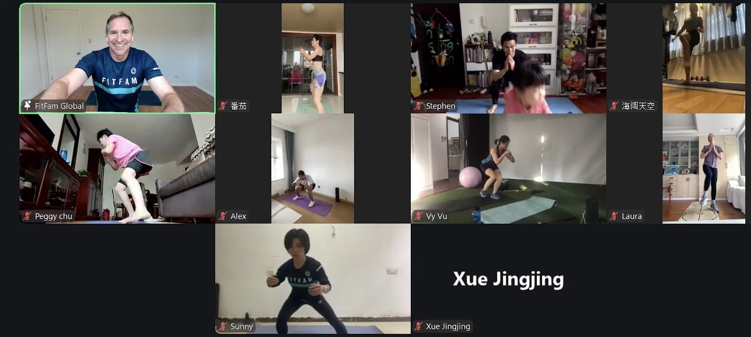 I was introduced to FitFam by another Aussie expat in Hangzhou in 2019. I was struck by how casual and inclusive it was. No egos, just people joining in at whatever fitness level they were - and it was almost ALWAYS ON. I remember in winter, freezing my ass off biking to the location, thinking, "I'll be the only idiot there!" - but no, there were plenty of others, and we got warm real quick. A great way to make friends. Come 2020, and I flew back to Australia in February for an important meeting - and COVID decided to shut the world. Everybody was in lockdown, my position finished, and I was at a loose end. But FitFam finds a way to connect. Virtual exploded, and this was the start of a golden FitFam period for me. I was doing my own bodyweight exercises at home, bored out of my skull. Kaz Chau put on some fitness vids to join along with, and then (somehow) I caught wind of more organized 'live' sessions with none other than Vy Vu. I was hooked then. It was fun, interactive, and as social as you can be online. It was a kick to see familiar faces week in, week out. I started leading and soon had sessions Monday to Saturday. Such great memories of catching up with people literally all over the world. We sweated, we connected, we had fun. Some are still in my Saturday sessions today. I still remember getting 70+ people at one of my sessions and then having to help check in 200+ at one of Cory's core blast sessions - fun times. Work commitments in July 2021 meant I could no longer lead during the week, so that dialed right down, but I still do Saturdays.