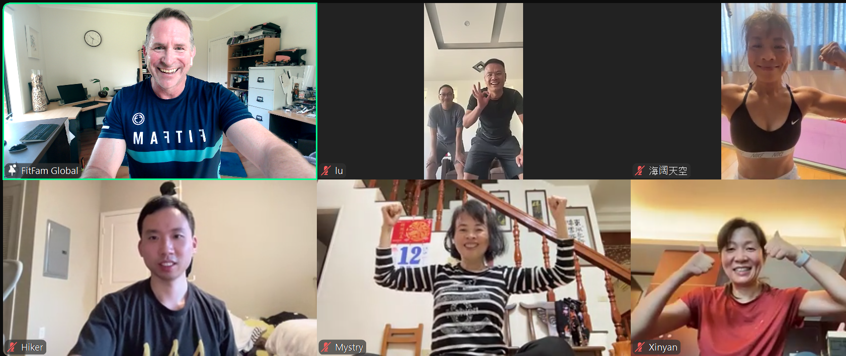 If you are thinking of taking the dive to become a leader, do it. It is more of a slide into a welcoming pool rather than a dive and is so rewarding. I started during COVID and the positive impact on people in lockdown was a beautiful thing. And if a grumpy old man can do it, you can too. Start with workouts you know, enjoy and are comfortable with. Join or support other leaders’ sessions, see what works and use what you like. There are plenty of experienced leaders ready to help and support and we would love more of us. I really connect with my Saturday crew and nothing gives me greater pleasure than seeing the regulars progress and even surpass me. Some of the transformations have been amazing. I love getting newbies and giving them some tips, letting them know virtual still has social connection. Being a leader is truly about the journey and I am still getting schooled by other leaders and, indeed, the FitFammers who join Saturday Sweatshop. So don’t expect the perfect performance, it’s okay to make mistakes, I still do today, it’s normal. I am truly grateful I persevered through those icy Hangzhou mornings to be part of this great community. I hope one day… ONE DAY, we can have a face to face session.